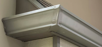 - Attached the two gutters to the house. Make sure the edge of the gutters is aligned to where the strip miter covers both equally.